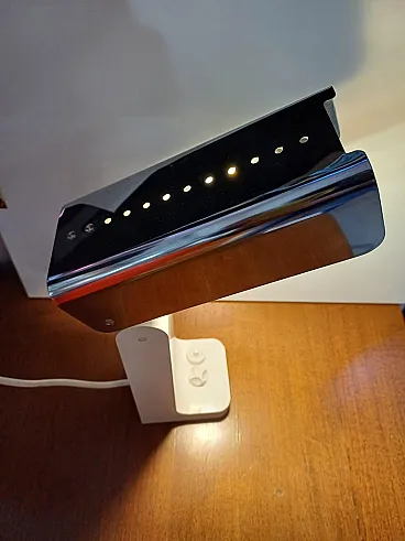 Lampada da tavolo modello Vademecum 4034 disegnata da Joe Colombo nel 1968 per Kartell Milano Italia. Lampada da tavolo Bianca con paralume in acciaio inox. Il paralume può essere chiuso. La lampada è dotata di 2 lampadine che possono essere accese separatamente o insieme. Lampada perfettamente funzionante, cablaggio originale.