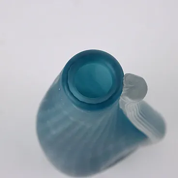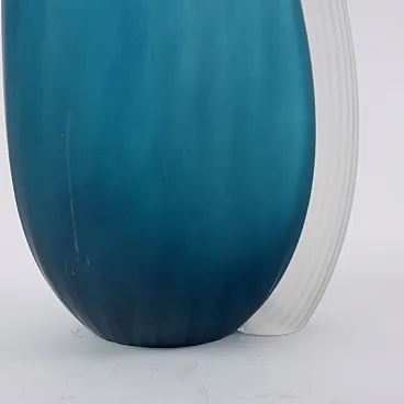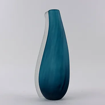Biomorphic vase in clear and blue satin glass worked with grooves. Manufacturer's mark engraved under the base.