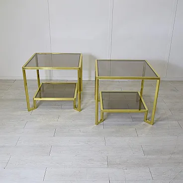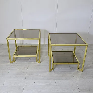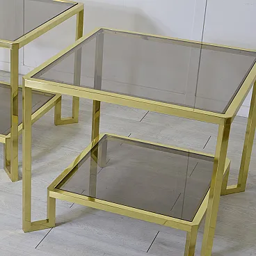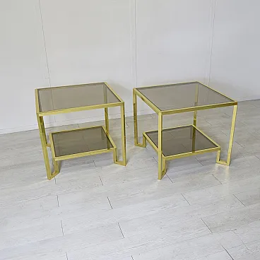 Pair of brass and smoked glass coffee tables by Maison Janson, 1970s