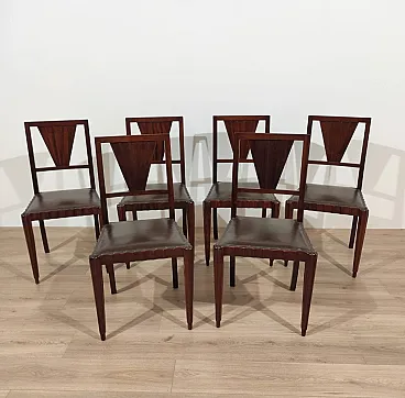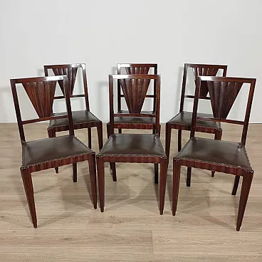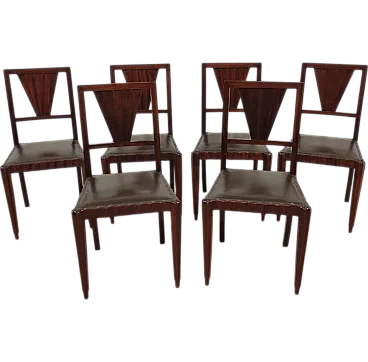 6 Jacques E. Ruhlman chairs with triangular backrest, 1940s