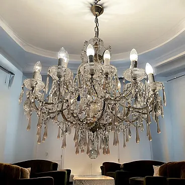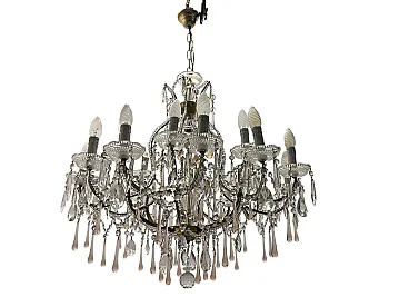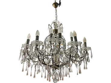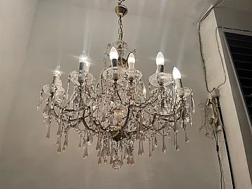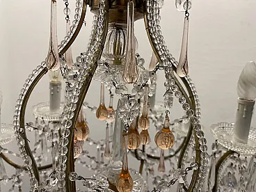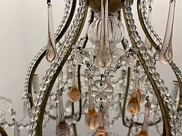 Additional Item Information - Large Crystal Beaded Pink Murano Glass Drop Chandelier Crystal glass beaded frame ornate with crystal drops and pink Murano glass tear drops. Height with chain 107 cm Crystal beading along the frame with hanging crystals and light pink Murano glass drops Height without chain 74 cm Width 75 cm Depth 75 cm Features 18 lights Requires E14 light bulbs Wiring checked by our electrician