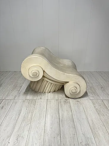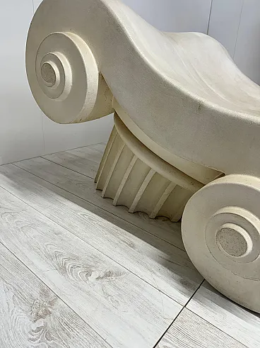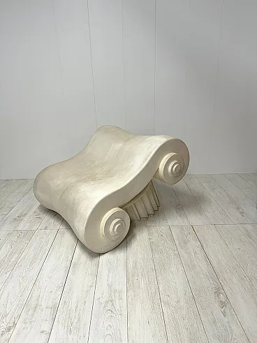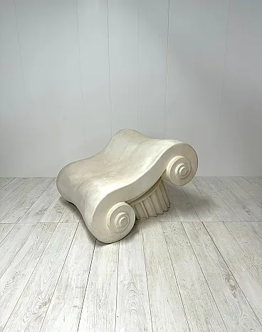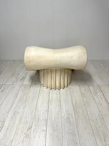 The CAPITELLO seat, the ATTICA armchair and the ATTICA TL coffee table, designed by Studio 65, are born from the ‘deconstruction’ of a traditional Greek column, creating a unique series that emulates its various parts. Each piece is handcrafted in soft polyurethane and finished with Guflac® Ultra, allowing for both indoor and outdoor use, giving the appearance of the marble from which it takes its inspiration. The tension between expectation and reality creates a sense of wonder as the softness of the furniture contrasts with the hardness of the stone. This iconic pop series has been exhibited in prestigious museums, including the Louvre and the Metropolitan Museum in New York, and is an interesting example of rebirth from ruins.