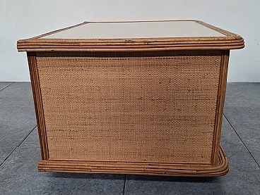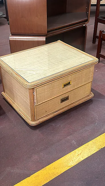 Take a journey back to the golden era with Vivai del Sud's distinctively stylish night table, straight from the 1970s. Every detail of this piece, from the meticulously crafted woodwork to the quaint, vintage design, radiates the essence of a time when craftsmanship was an art, and furniture was built to last generations. This night table is more than just a piece of furniture; it's a slice of history. It's an invitation to immerse yourself in the charm and elegance of a time that's long gone, but still resonates in the form of enduring designs. The night table, with its robust structure and rich texture, serves not just a functional purpose, but also acts as an accent piece that subtly elevates the aesthetic of your space. The perfect blend of minimalist, yet intricate design and timeless appeal makes this night table an absolute must-have.