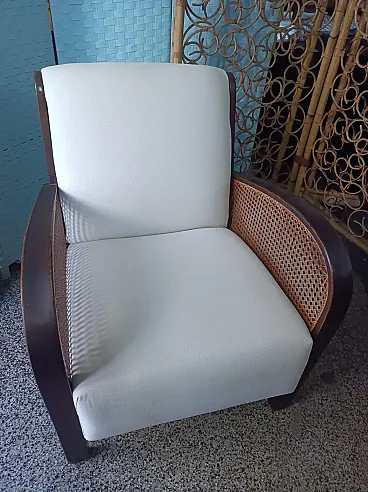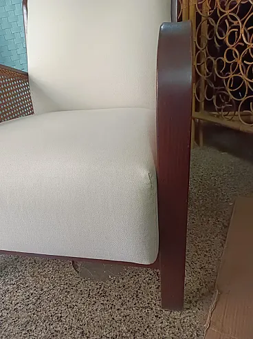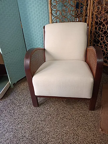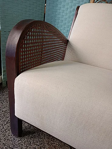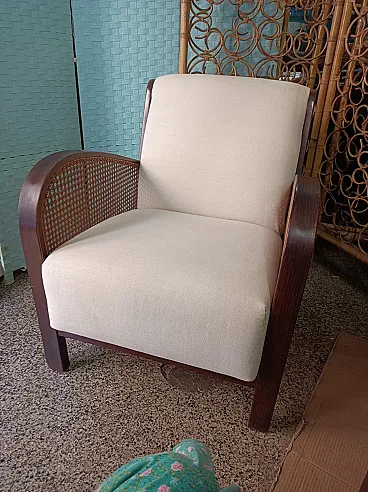 Thonet Art Deco padded armchair with Vienna straw sides, 1940s