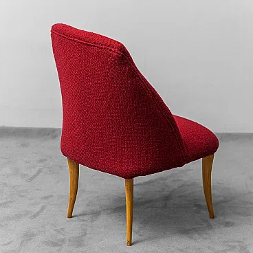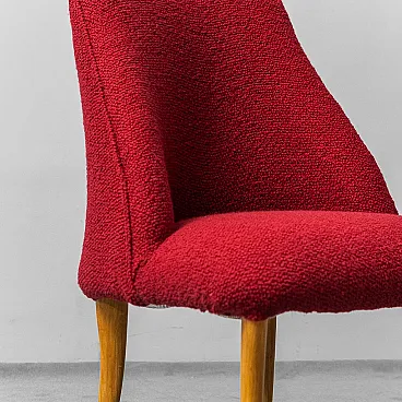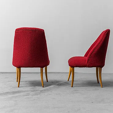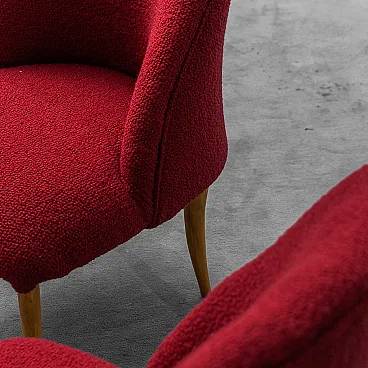 Pair of armchairs in wood and red bouclé, 1960s
