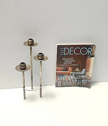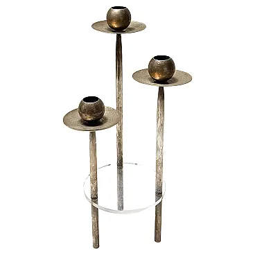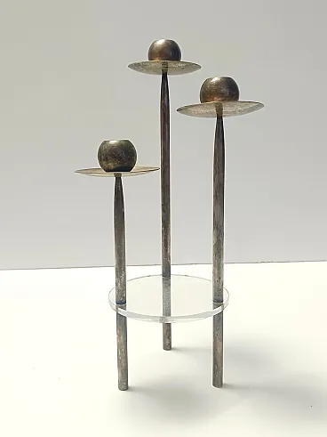 Made in Italy, 1970s. This splendid candelabrum is made in silver-plated brass and plexiglass. It features its original patina, but we can clean it for free. The candelabrum is vintage, therefore it might show slight traces of use, but overall it can be considered as in excellent original condition. It is marked by Mesa. Measures: diameter: 16 cm height: 33.5 cm. Order it now! We sell the best quality pieces and we offer an amazing service: if it's not during night time, we answer within 2 hours and we absolutely love to follow every step of the purchase and even after. As matter of fact we really appreciate our customers’ feedback and when we receive pictures of our pieces in their new homes. We assist you during the process and answer all your questions. In addition to this, we always review the pieces before shipping, so that you receive the goods at its very best. We provide the best possible quotes and professionally and carefully pack the items. Insurance is included. And if there is any issue, it is our mission to make so you don't have to worry: we will always be there for you to assist in any way possible.