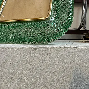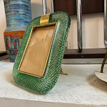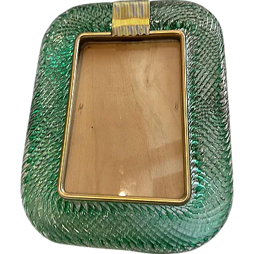 A light green murano glass picture frame designed and manufactured in Venice in the style of Barovier, it's in lovely conditions. The vintage photo frame is a beautiful and elegant piece of decor that is perfect for displaying your favorite memories in style. Barovier is a renowned Italian glass-making company that has been in operation since 1295, and their products are highly valued by collectors and design enthusiasts alike. The photo frame features a rectangular shape with a solid brass clean internal frame. The outer part of the frame is made of green clear Murano glass. The glass has been carefully crafted by skilled artisans, with each piece being unique due to the nature of the glass-making process. This photo frame is a perfect example of the Art Deco style that was popular in the early 20th century, characterized by bold geometric shapes, sleek lines, and a focus on luxury and craftsmanship. The photo frame is a timeless piece that will add elegance and sophistication to any room. It's in lovely conditions.