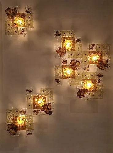 Italian 1970s Toni Zuccheri for Venini Sconces "Patchwork" Murano Glass