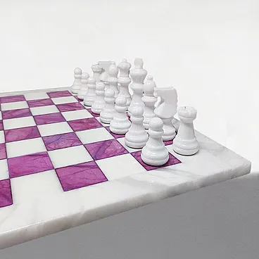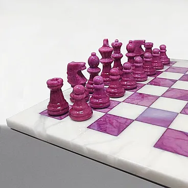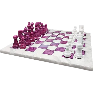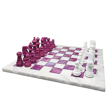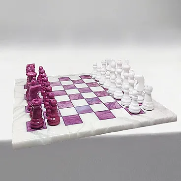 Pink and white chess set in Volterra alabaster handmade, 1970s
