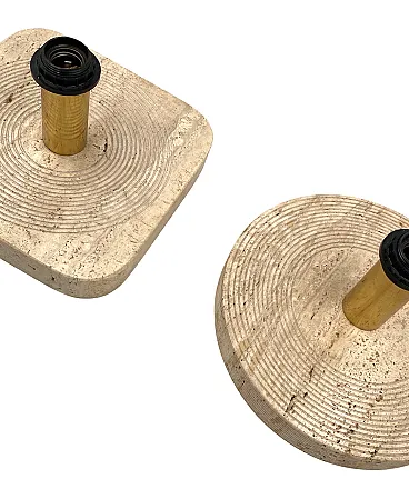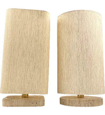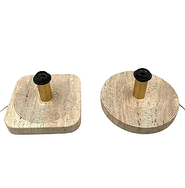 Set of 2 Hollywood regency Travertine table lamp base, Italy 1970s