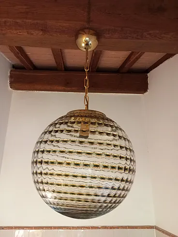 Lampadario rotondo in vetro ondulato di Targetti Sankey, anni ’60.