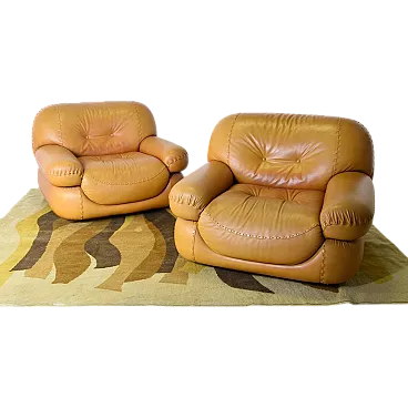 Pair of Sapporo leather armchairs for Mobil Girgi, 1970s