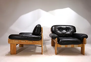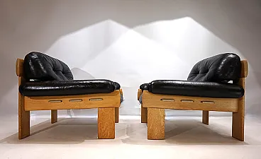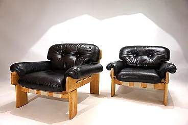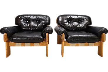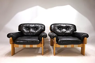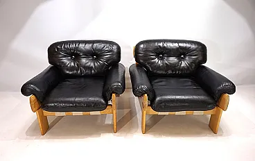 Pair of Asko Oy Africa leather armchairs by Esko Pajamies, 1980s