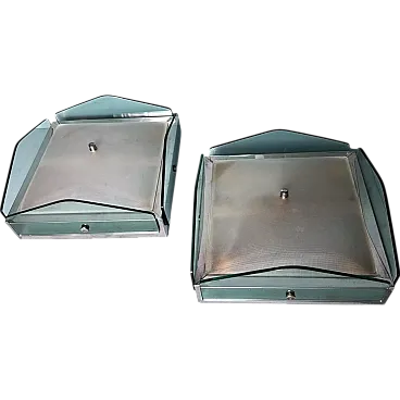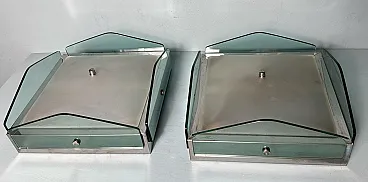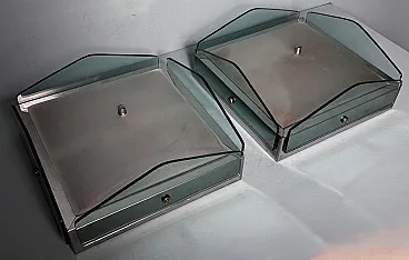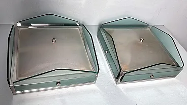 Pair of metal and glass ceiling lights in Veca style, 1960s