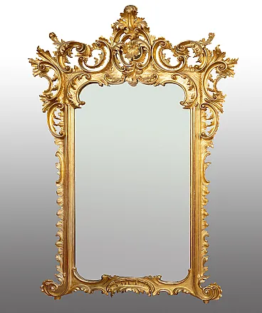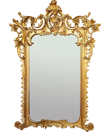 Description: Neapolitan Louis Philippe mirror from the first half of the 19th century, entirely sculpted, carved and gilded with gold leaf. The mirror looks like a triumph of carved wood with a movement that develops from bottom to top where it is possible to appreciate all its finesse. The cymatium is a succession of rocaille scrolls. Two feet having a roccailles motif contribute to the elegance and refinement of this splendid object. The mirror is made of mercury salt glass and is contemporary with the wooden frame. Origin: Naples (1840/50) General Conditions: Excellent condition Measurements: 160xH240cm. Document: Certificate of Authenticity. Assistance: We are at your disposal for further clarifications or photographic details Shipping: Throughout Italy, Europe and the rest of the world at very low prices with maximum safety and traceability. Shipping will be agreed privately and will not be expensive. We wish you a good day. Borrelli Antiquities.