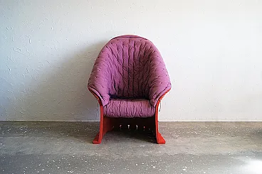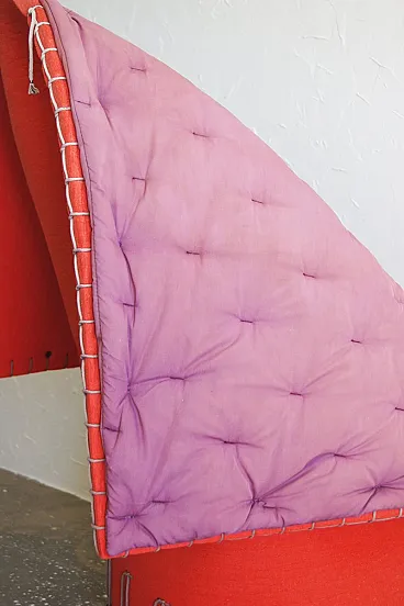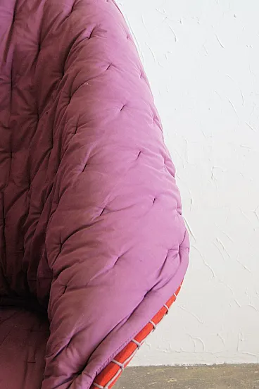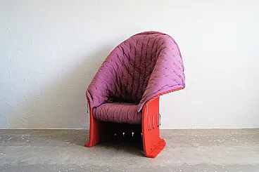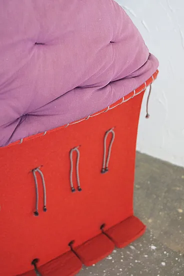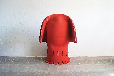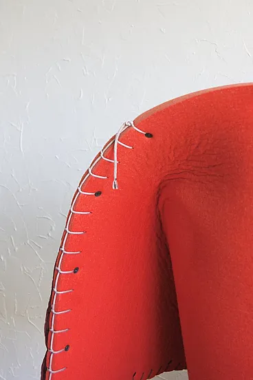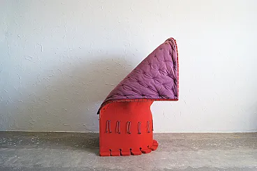 The legendary Italian designer's unlimited imagination has conjured up everything from onion chairs to otherworldly structures The Feltri armchair designed by Gaetano Pesce is a one-of-a-kind piece, coveted by collectors. None of Gaetano Pesce's furniture has an internal support structure. The frame of Gaetano Pesce's Feltri chair is made entirely of felt infused with epoxy resin. The chair's flexible back is covered in quilted upholstery and can be adjusted to bring the chair's arms closer to the user for a more ambient feel, or spread out like a throne. Feltri was created at the Cassina Research Center, a place synonymous with experimentation and avant-garde design thinking, where Gaetano Pesce devoted time and thought to the project, inventing a new complex manufacturing process that was later patented by the company. seat width 54 CM The armchair is preserved in its original condition. The quilted upholstery has discoloration from the sun.