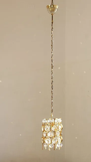 Brass and crystal lamp by Christoph Palme for Palwa, 1970s
