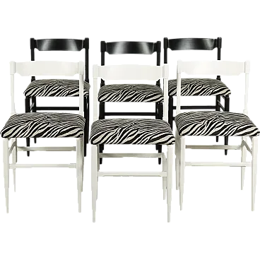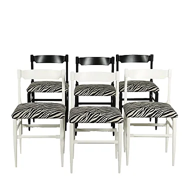 6 Jungle chairs in wood and velvet, mid-19th century