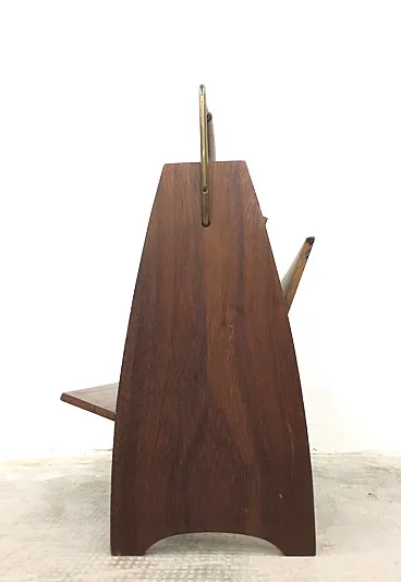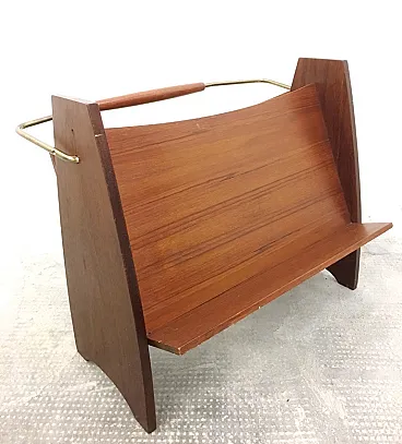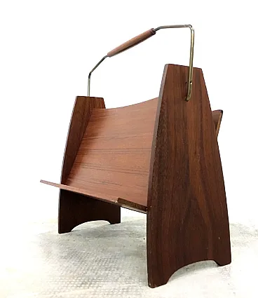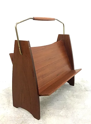Italian-made teack magazine holder from the late 1960s, made entirely of wood, brass carrying handle. PERFECT CONDITIONS Measurements: Height 48 cm - Width 50 cm - Depth 28 cm