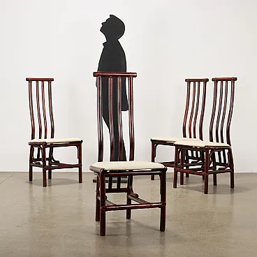 4 S2 chairs in rattan and fabric by Tito Agnoli for Bonacina, 1980s