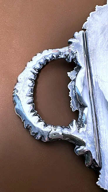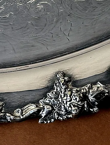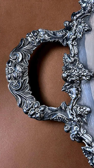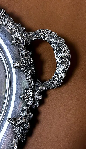 Please read the entire description carefully, as we strive to provide you with detailed technical and historical information to ensure the authenticity of our items. This is an exceptional and rare Sheffield Plate tray in early Victorian style. Notably, this tray is rare because it belongs to the transitional period between Old Sheffield Plate and electroplated, or silver-plated items. It was crafted in 1850 by Mappin Brothers, one of the finest English companies, established in Sheffield in 1810 (as indicated by the mark on the underside of the tray). The term “Sheffield Plate” refers to a method of fusing silver and copper, discovered accidentally in 1742 by silversmith Thomas Boulsover in Sheffield. This technique was applied to various domestic items from around 1750 to 1850 and was significant for its technical value and immediate economic and social impact. By 1750, household items for a refined middle class were already being produced using Sheffield Plate. This social class, keen to replicate the lifestyle of the nobility, found in this material an affordable means to achieve their aspirations. Sheffield Plate items were not inferior to solid silver pieces of the era, except for their lower cost, which contributed to the technique's success. After 1840, with the advent of electroplating (a galvanic silvering process), the Sheffield Plate gradually fell out of use and came to be known as “Old Sheffield Plate.” Our tray, made in 1850, was not produced using the traditional Old Sheffield Plate method. Although copper (visible beneath the silver coating in the photos) is still used as the base metal, the silvering was done via the galvanic method, where a significant amount of silver was deposited electrolytically onto the copper. This makes the piece valuable and, as noted, rare, being among the last items made with copper—a superior, though costly, conductor that was later replaced by more economical metals and alloys suited for electroplating (such as brass, nickel silver, and nickel) after approximately 1865. Other production methods also evolved. The engraving on our tray was done by hand using a burin, as copper's softness made it ideal for this type of work. However, with the adoption of harder metals, this manual process was gradually replaced by mechanical techniques. The tray's exquisite handles and vine-themed border are particularly noteworthy, crafted through investment casting and hand-finished with detailed chiseling. Joseph Mappin Sr. founded the company and initially operated it with his son as Joseph Mappin & Son. In 1828, Joseph Jr. (1794-1841) parted ways with his father and partnered with George Arundel (Arundel & Mappin). After Arundel's retirement in 1835, Joseph Jr. continued the business under his own name. The company’s trademark (a “sun”), which also appears on our tray, was registered that year. Following Joseph Jr.'s death in 1841, his eldest son, Frederick Thorpe Mappin, took nominal leadership of the company alongside his three younger brothers: Edward (1826-1875), Joseph Charles (1828-1901), and John Newton (1835-1913). Despite his young age, Frederick proved to be an adept businessman, successfully managing the company, first as Joseph Mappin & Brothers and, from 1852, as Mappin Brothers. In 1851, the company moved its operations to the new Queens Plate & Cutlery Works and participated in the Great Exhibition in London, opening showrooms in the city. In 1857, John Newton Mappin, the youngest brother, joined as a partner. However, in 1859, the Mappin Brothers dissolved, but the company continued to operate successfully under different names. In 1963, Mappin & Webb merged with Elkington and Walker & Hall to form British Silverware Ltd. Unfortunately, the merger was unsuccessful, and in 1971, the Mappin & Webb factory in Sheffield closed its doors. The tray is in good, unrestored condition, showing signs of 174 years of wear. Dimensions: width 73 cm, depth 46 cm, height 3 cm. We use special packing materials (wooden crates, Styrofoam, etc.) for all our shipments to ensure maximum protection and safety of the items.