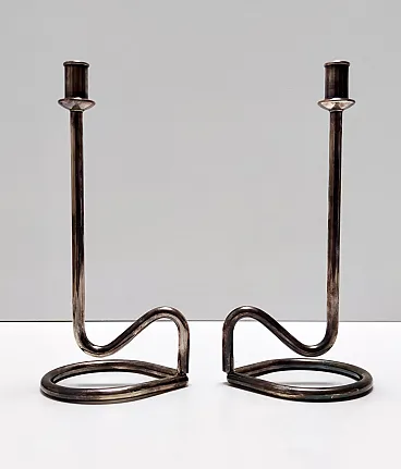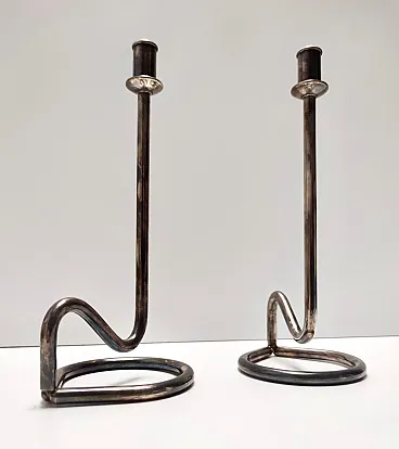 Made in Italy, 1990s. They are made in silver plated metal. These candleholder are vintage, therefore they might show slight traces of use, but they can be considered as in very good original condition and ready to become a piece in a home. On request we can clean them. Marked PM Italy. Measures: Width: 10 cm Depth: 8.5 cm Height: 21 cm. Order it now! We sell the best quality pieces and we offer an amazing service: if it's not during night time, we answer within 2 hours and we absolutely love to follow every step of the purchase and even after. As matter of fact we really appreciate our customers’ feedback and when we receive pictures of our pieces in their new homes. We assist you during the process and answer all your questions. In addition to this, we always review the pieces before shipping, so that you receive the goods at its very best. We provide the best possible quotes and professionally and carefully pack the items. Insurance is included. And if there is any issue, it is our mission to make so you don't have to worry: we will always be there for you to assist in any way possible.