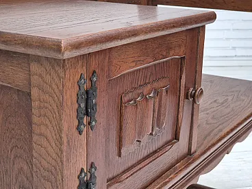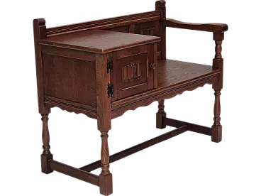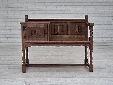 1960s, Danish side bench, dark solid oak wood, plywood.