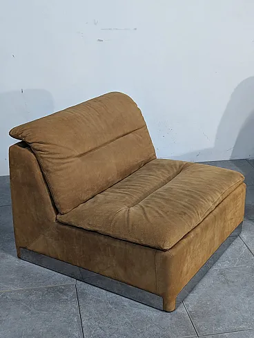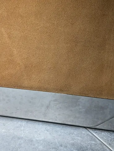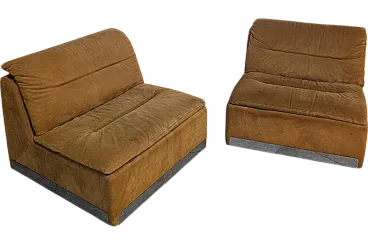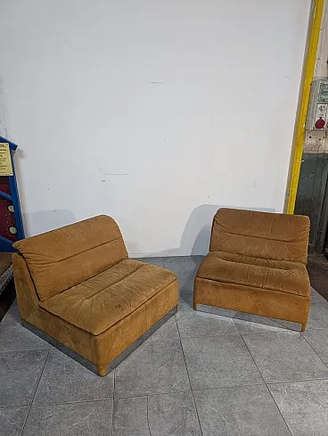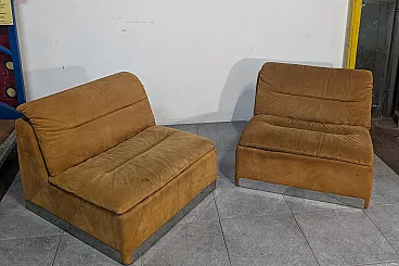 Experience the fusion of steel and alcantara from the 1970s, with this exclusive pair of armchairs by Saporiti. Saporiti is an Italian furniture company, founded in 1950 by Mr. Sergio Saporiti and still under control of the Saporiti family, has contributed to the creation of milestones in the history of Italian design, producing some of the most sophisticated and advanced pieces of furniture of the history of Italian design. Built with a robust, solid structure, these chairs embody both strength and beauty, ensuring they endure the passing of time, whilst maintaining their elegance. Each chair boasts soft cushions, to make the seat as more comfort as possible. The item is preserved in perfect condition.