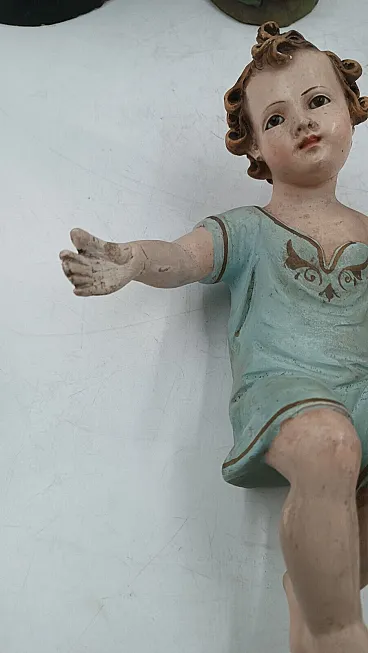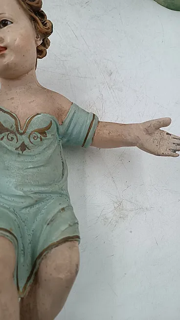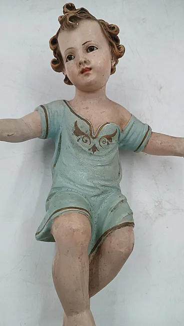 Baby Jesus, plaster crib statue with glass eyes, early 20th century