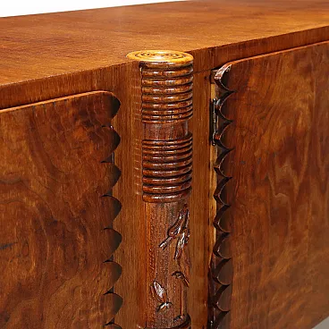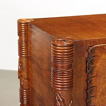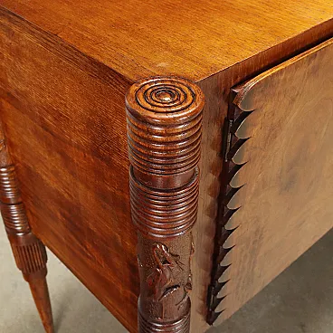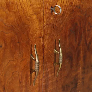 Oak veneer and brass chest of drawers, mid-20th century