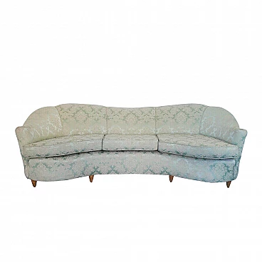 Designed and produced in the '50s Giò Ponti style. Mid century sofa of high quality semi-circular manufacturing. Original fabric with celestial floral pattern. Wooden base and structure with 6 conical feet. Good general conditions. To report stains on the fabric and signs of time, as in the photo.