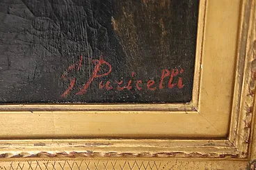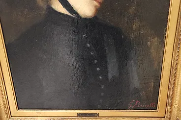This exquisite 19th-century portrait of a young woman offers a fascinating glimpse into the artistic sensibilities of the era. Signed lower right in red by G. Puricelli, the painting is attributable to the Italian painter Giuseppe Puricelli, born in Gallarate (Italy) on 4 September 1825 and died in Casirate d'Adda (Italy) on 17 July 1894, as indicated by plaque on the frame, without authentication.