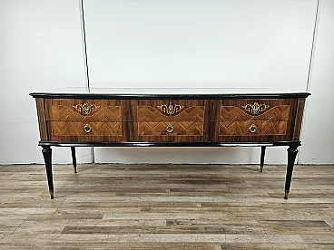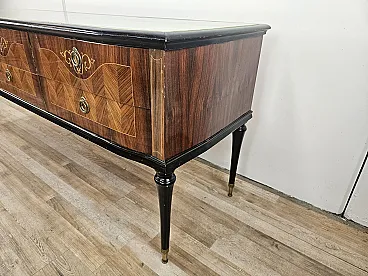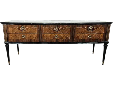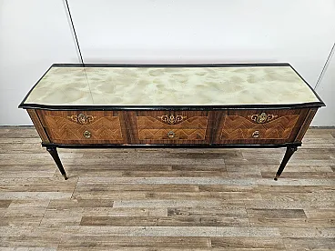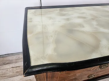 Bedroom dresser with six drawers and glass top, 60s