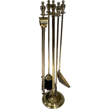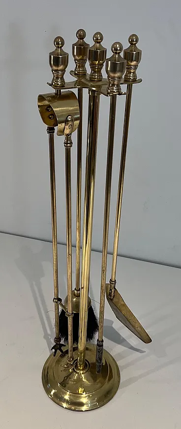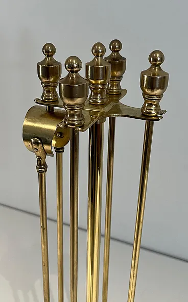 Neoclassical style brass fireplace instruments, 1970s
