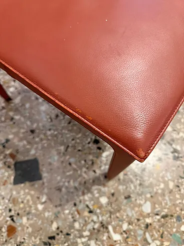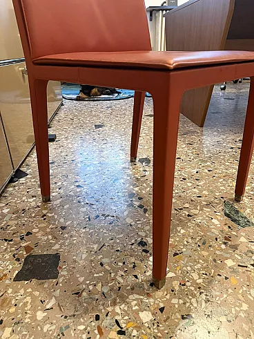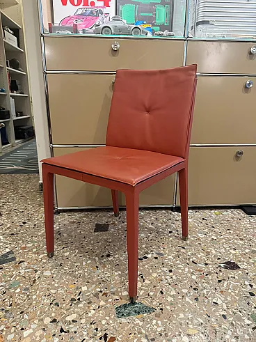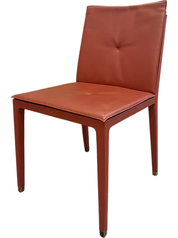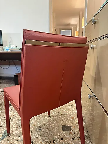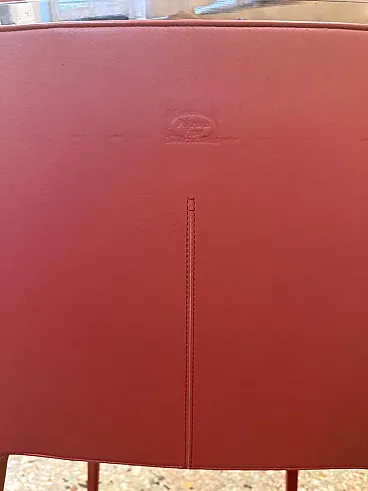 The Fitzgerald chair has a rigid polyurethane structure reinforced with a metallic insert. The padding is in polyurethane foam and polyester wadding and strengthened with regenerated saddle-leather. Delicate ‘X’-stitching, carried out by hand with contrasting thread, decorates the inside of the backrest and seat.