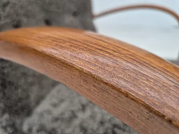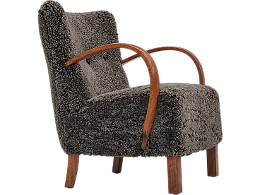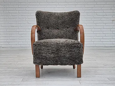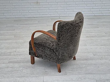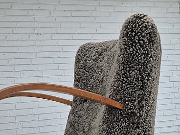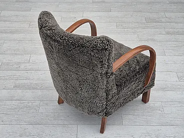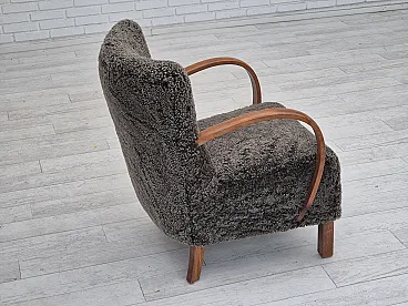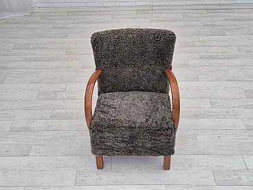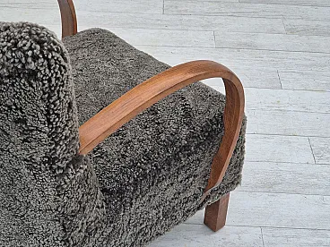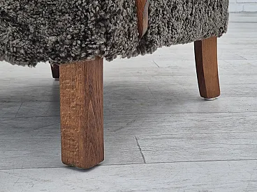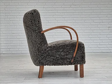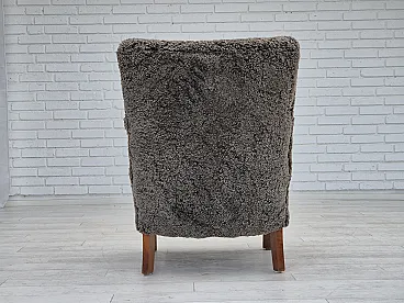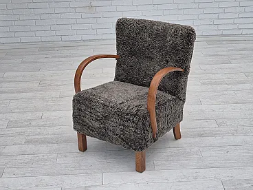 1960s, reupholstered Danish art deco armchair, genuine sheepskin.