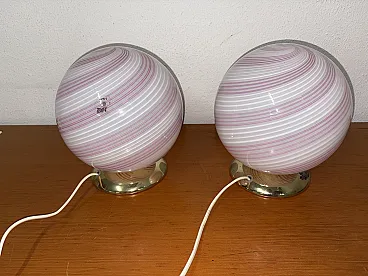 Pair of pink swirl lamps, 70s