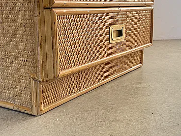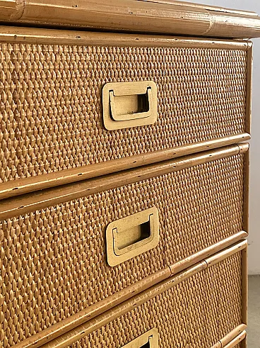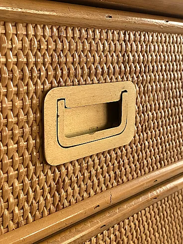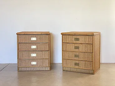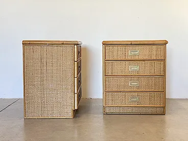 Pair of 70s bedside tables in wicker and brass handles