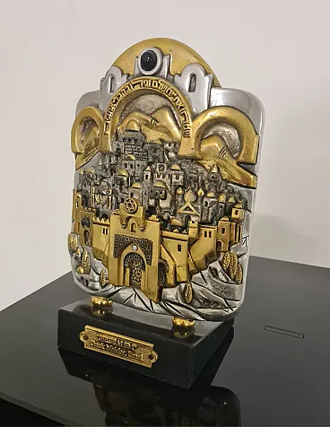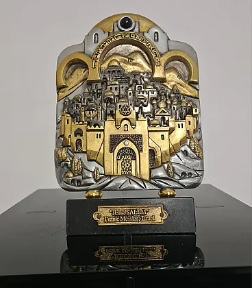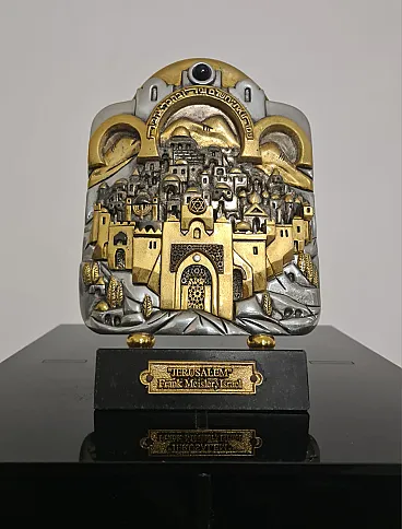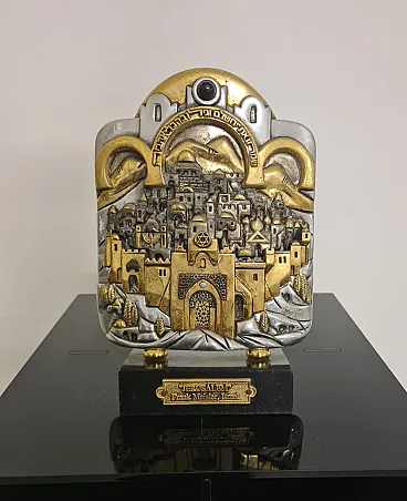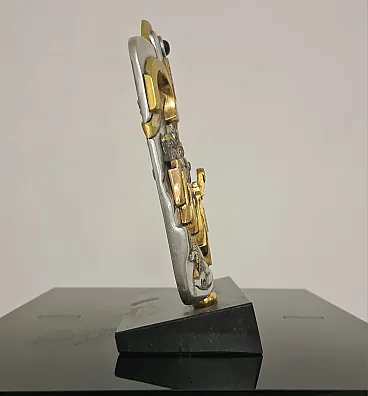Sculpture sculpted and handcrafted by sculptor Frank Meisler, with silver and gold plated elements, marble base.