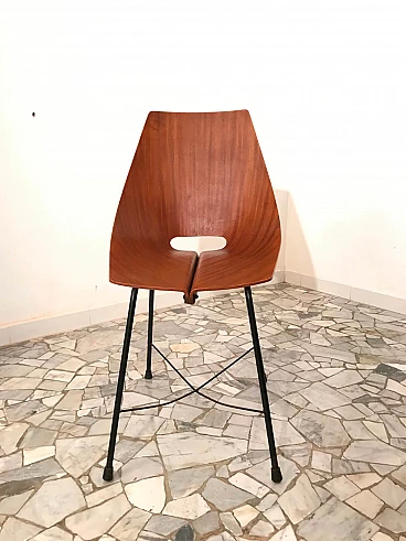 6 chairs company plywood curved Monza, with black painted metal feet.