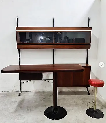 Bar cabinet with stool by Ico Parisi for Mim, original brand, structure in fine rosewood and metal, 1960s.