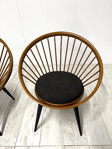 Coppia di poltrone i legno e seduta imbottita in tessuto. La Circle Chair prende il nome dal suo caratteristico schienale circolare tenuto insieme da aste rotonde. Progettata nel 1958 dal designer svedese Yngve Ekström per il produttore italiano Gessef, la Circle Chair è una poltrona di rara eleganza e dal design scandinavo senza tempo. Con la sua bella patina originale, questa poltrona vintage degli anni '50 è in ottime condizioni, soprattutto considerando la sua età.