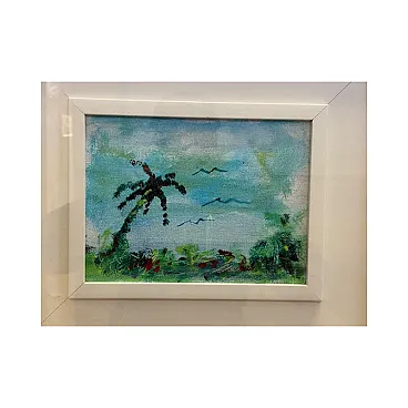 Framed oil on canvas landscape by Ernesto Treccani, 20th century