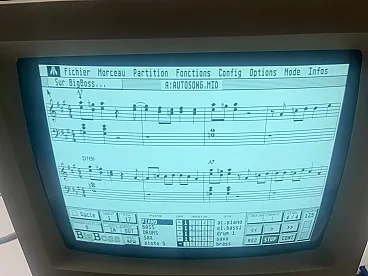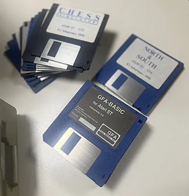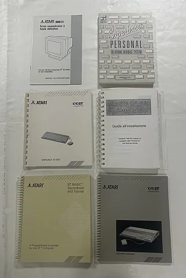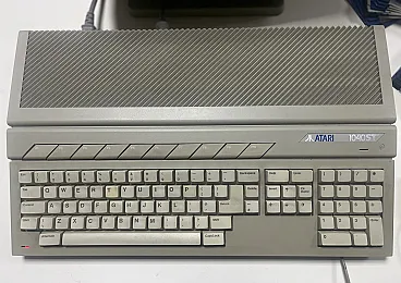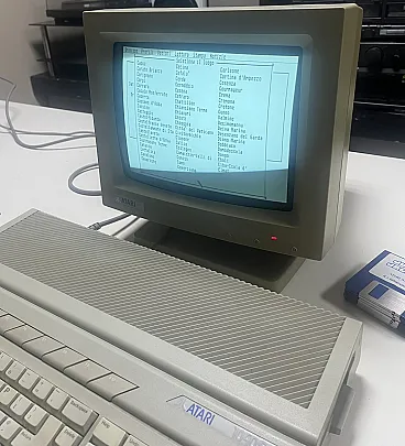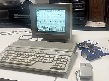 Atari ST1040 with Atari SM125 Monochrome Monitor and Mouse The Atari ST is a second generation home computer based on the Motorola 68000 processor, equipped with 512 kByte of RAM (or more, depending on the models) and equipped with a 3.5" floppy disk. In many respects, such as with the windowed graphical interface, the mouse and the aforementioned Motorola 68000 processor, the Atari ST was similar to the much more expensive Apple Macintosh and the Commodore Amiga. The interface was strongly inspired The Macintosh caused it to be nicknamed "Jackintosh" (after Jack Tramiel and Macintosh) by the press of the time. CPU: Motorola MC68000, 8 MHz ROM: 192KB Software included in ROM: Atari TOS (The Operating System) + GEM (Graphics Environment Manager) RAM: 1 MB, expandable up to 4 MB Graphics mode: 320×200 (16 colors) up to 640×400 pixels Audio: Yamaha YM-2149, 3 voices + 1 channel for noise Keyboard: 94-key QWERTY, with arrows, numeric keypad and function keys 1 serial DB25 male, RS232C 1 parallel DB25 female, Centronics 1 external hard disk drive, DB19 female 1 external floppy disk drive, DIN 14 pin 1 audio/video DIN 13, RGB and composite video 1 IEC power input 2 MIDI (in and out) DIN 5 poles, lateral 1 connector for cartridges, 40-pin edge, lateral 2 mice and joysticks, DB9 male, lower The serial port, with 25-pin male D-Sub connector. A modem can be connected to the serial port. The parallel port, with a 25-pin female D-Sub connector, to which it is possible to connect a printer. The port for the Atari hard disk, with a 19-pin female D-Sub connector. from the manual, we read that the hard disk can transfer data at a speed of 10 megabits per second. The external floppy disk drive port, with 14-pin DIN round connector. The external floppy disk drive is the secondary drive, since the Atari 1040 ST F is already equipped with an internal floppy disk drive. The monitor port can work in three modes, depending on the connected monitor. with the SM125 monochrome monitor it is high definition: 640×400 pixels in black and white. with other monitors it can be 320×200 with 16 colors or 640 x 200 with 4 colors. Power connector, IEC C13 standard. The power supply is internal. At the rear, we also find the power switch and the reset button. On the right side, we find the floppy disk drive On the left side, we find the two MIDI IN and OUT ports – they are 5-pin DIN connectors – and the expansion port for 40-pin cartridges. The two ports for connecting two joysticks, or a mouse and a joystick, are located on the bottom of the computer. They are two 9-pin D-Sub male connectors.