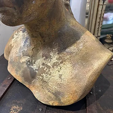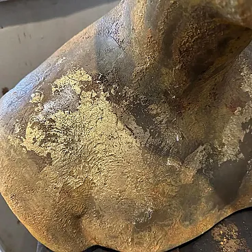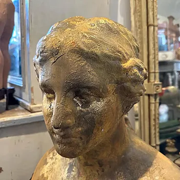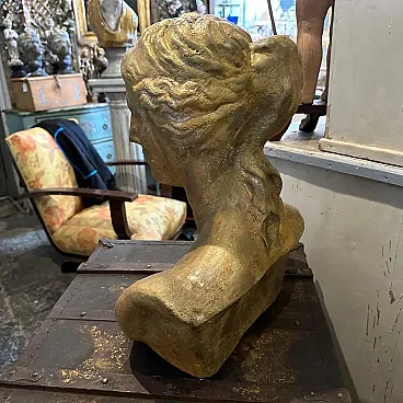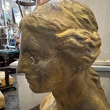 This exquisite bust captures the essence of Neoclassical aesthetics, featuring a meticulous rendering of the timeless beauty of the Venere di Milo (Venus de Milo), a celebrated ancient Greek statue. It came from a Gipsoteca in a sicilian academy of fine arts. They used to patinate the plasters in different ways, this one has been made with gold, amber and brown for this amazing result also given of the time, probably they used it for theater sets. Plaster was a common material for sculptures known for its versatility and ability to capture fine details, the use of gold patina involves applying a thin layer of gold-colored finish onto the surface of the sculpture. This technique adds a luxurious and classical aesthetic to the piece. The Bust exudes a sense of timeless beauty and classical elegance, paying homage to the artistic heritage of Sicily and the enduring appeal of the Venus de Milo. The plaster bust it's in original condition with signs of use and age.