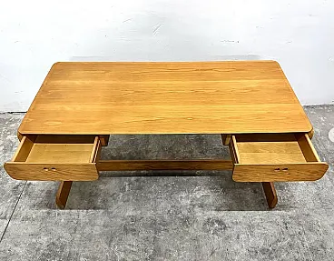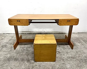 Belgian desk designed by Derk Jan de Vries and produced by Maisa, 80s. All wood structure, two drawers and an open cube on one side, usable in various ways, perfect condition.