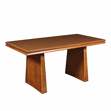 Wood table with glass top made in Italy, 40s