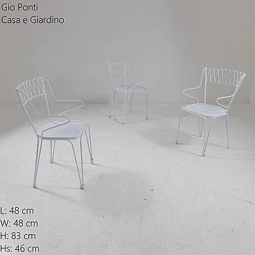 Set of 3 chairs with iron armrests designed by Gio Ponti for Casa e Giardino in the 1950s. The armchairs were repainted with white paint.
