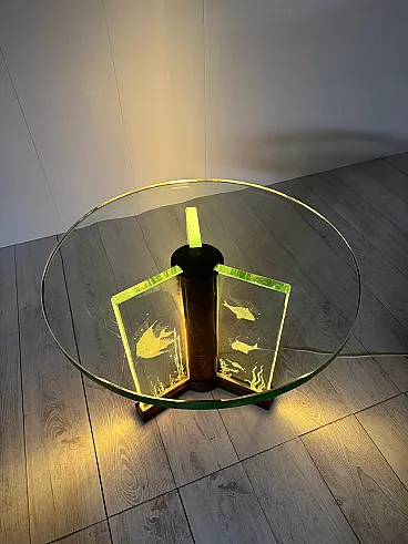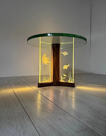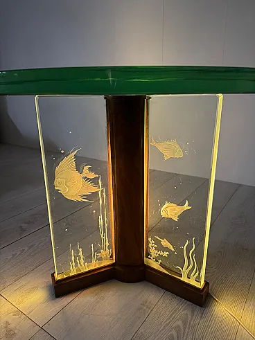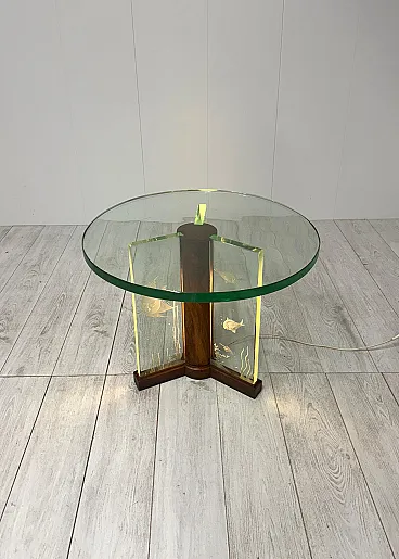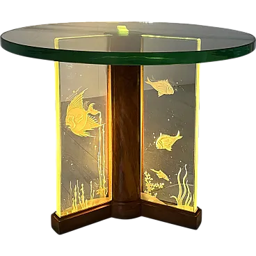 1940s Precious and rare 1940s light table belonging to the production of Luigi Brusotti, Milan. Composed of three thick glasses with acid-etched marine decorations, thick glass top. Central body in briarwood with lighting system that shines light towards the decorated glass panes. Good overall condition, small micro-blemishes not visible on the whole.