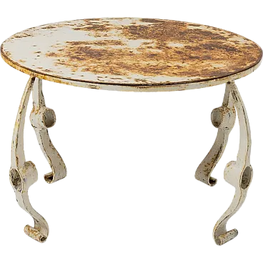 Painted iron table produced in the 60s. The structure recalls the classic pickaxe used by miners. Strong patina due to age